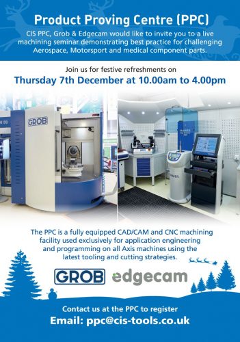 CIS cordially invite you to attend our final open day of 2017.. CIS PPC, Grob & Edgecam will be hosting a live machining seminar, demonstrating best practice for challenging Aerospace, Motorsport and Medical component parts and materials ……